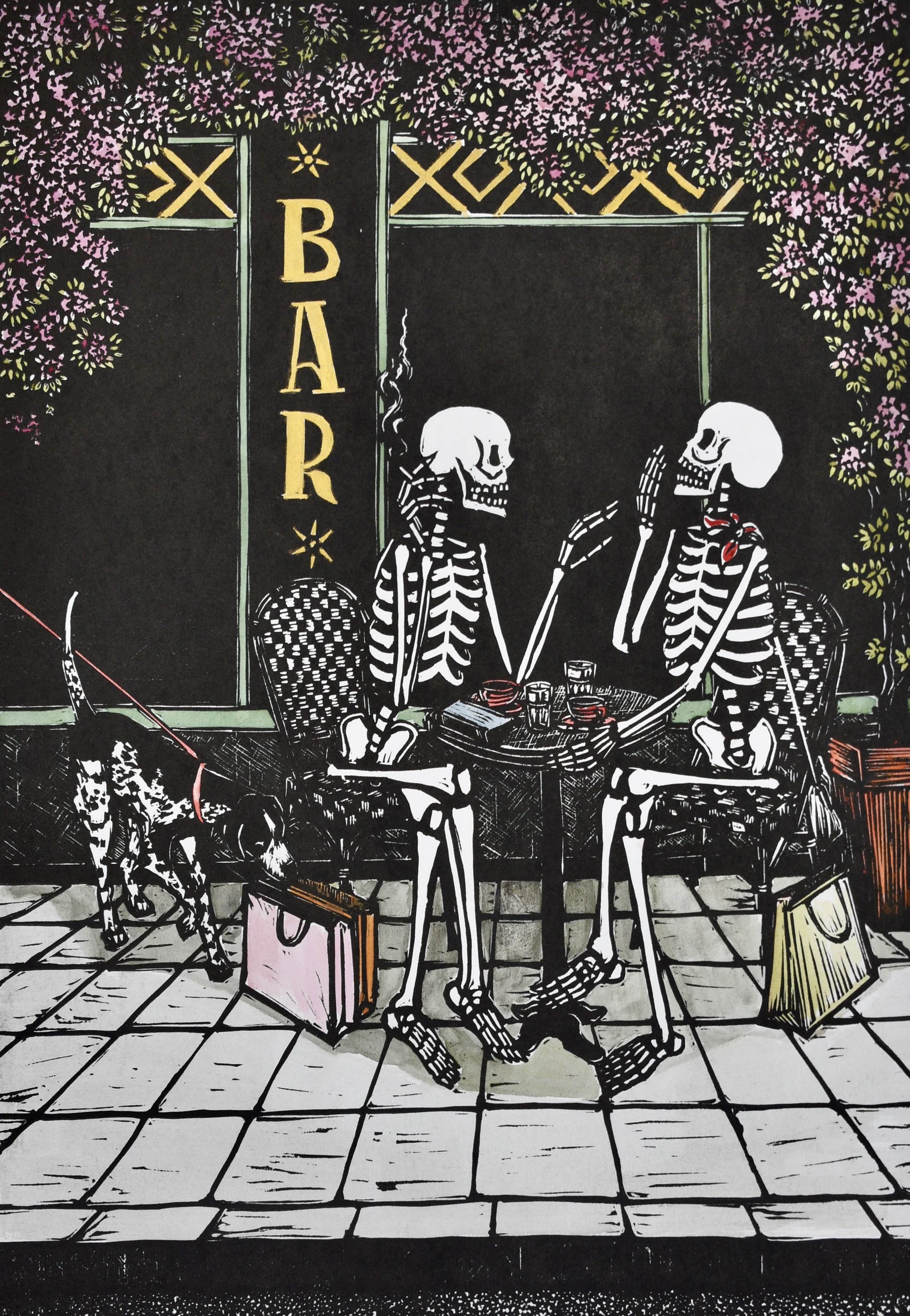 Limited edition hand coloured linocut