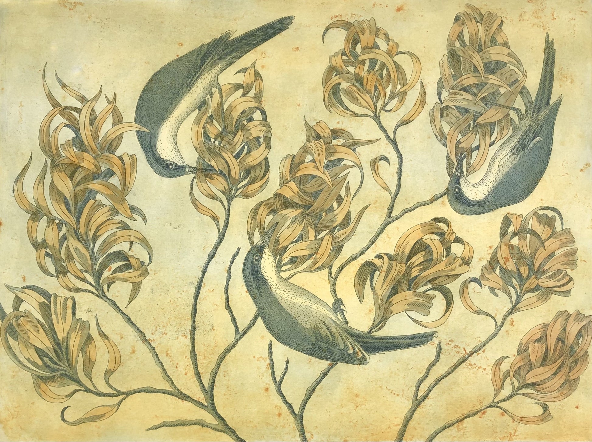 MEDIUM: Limited edition etching with watercolour on cotton rag paper.